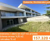 Novostavbu – 2 izbový byt na prízemí so záhradkou 74 m2 v meste Galanta, Richtárske pole.Tehlová novostavba sa začala stavať v roku 2023, je skolaudovaná, skladá sa z 35 bytov na 3 podlažiach, 92 parkovacích miest.