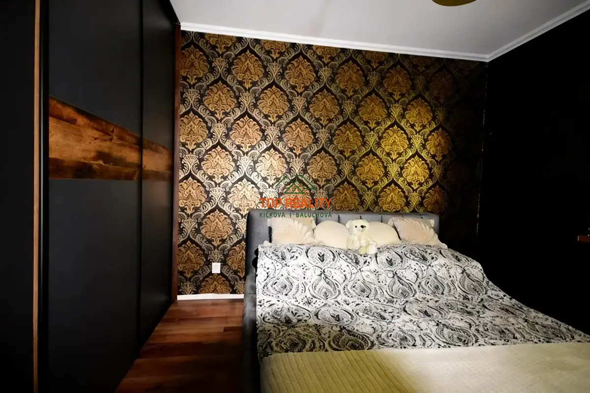 - v interiéri laminátová podlaha, dekoratívne úpravy interiérových stien dizajnovými tapetami.